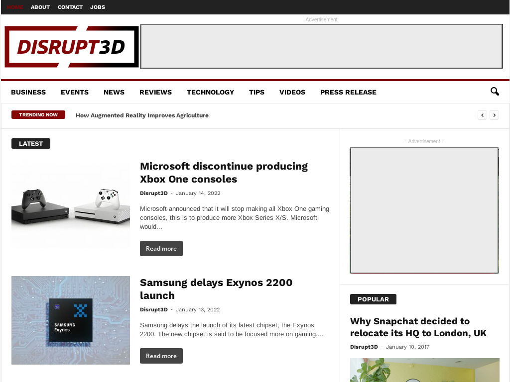 Disrup3D is a an online technology news website that showcase latest tech news, stories, and events.